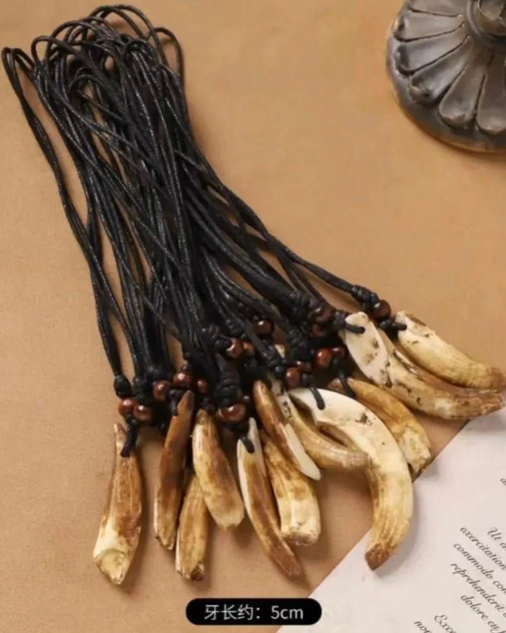 This pendant shows the beauty of nature and time. Made from a real boar tusk, it keeps the natural coffee-brown color, giving it a warm and vintage look.
